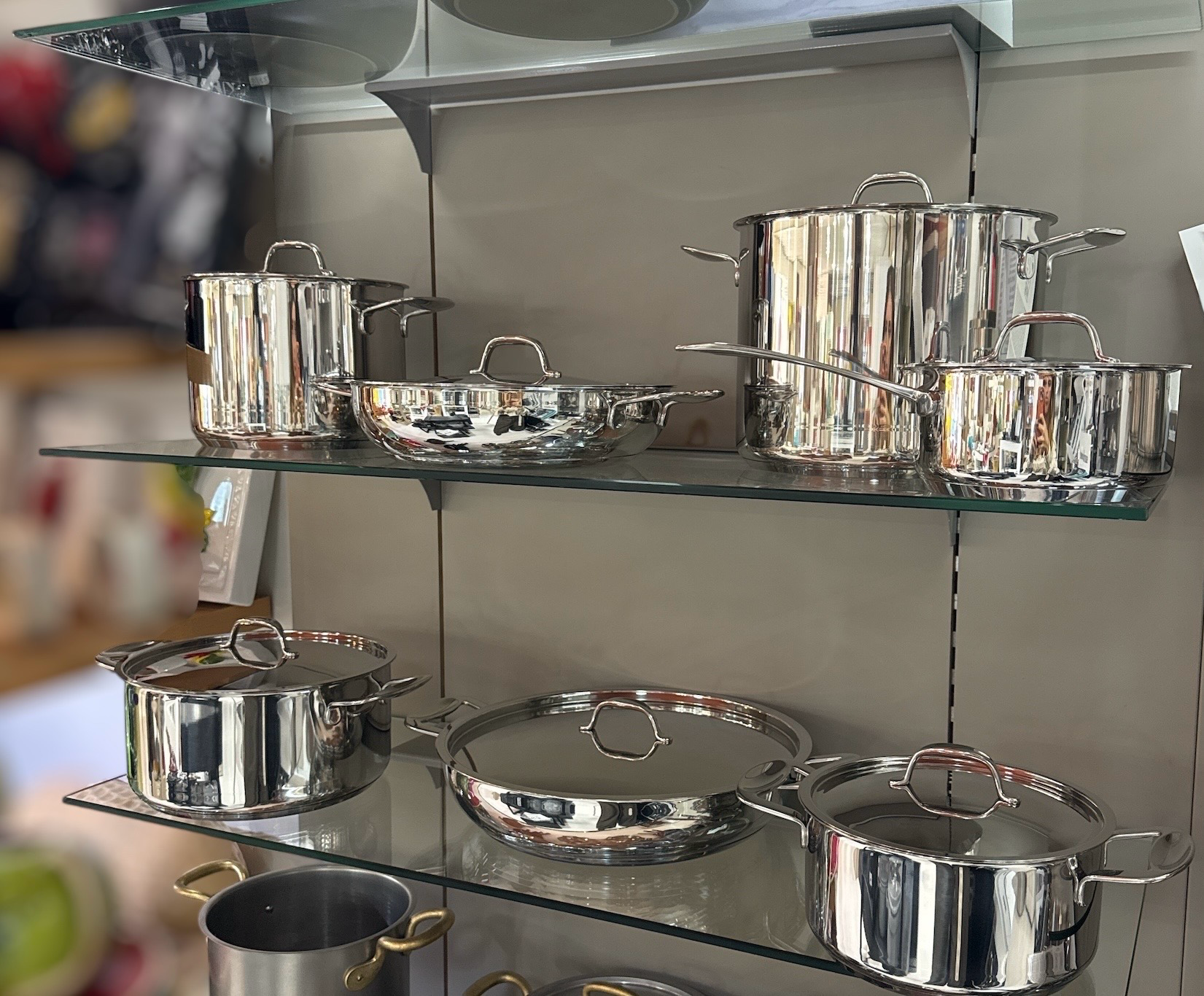 Batteria acciaio inox 18/10 by Mepra – triplo fondo – adatto a tutti i piani cottura compresa l’induzione.La batteria comprende : – Pentola cm.20 + coperchio cm.20 – Pentola cm.24 + coperchio cm.24 – casseruola cm.20 + coperchio cm.20 – casseruola cm.24 + coperchio cm.24 – casseruola 1 manico cm.16 + coperchio cm.16 – tegame cm.26 + coperchio cm.26 – tegame cm.32 + coperchio cm.32