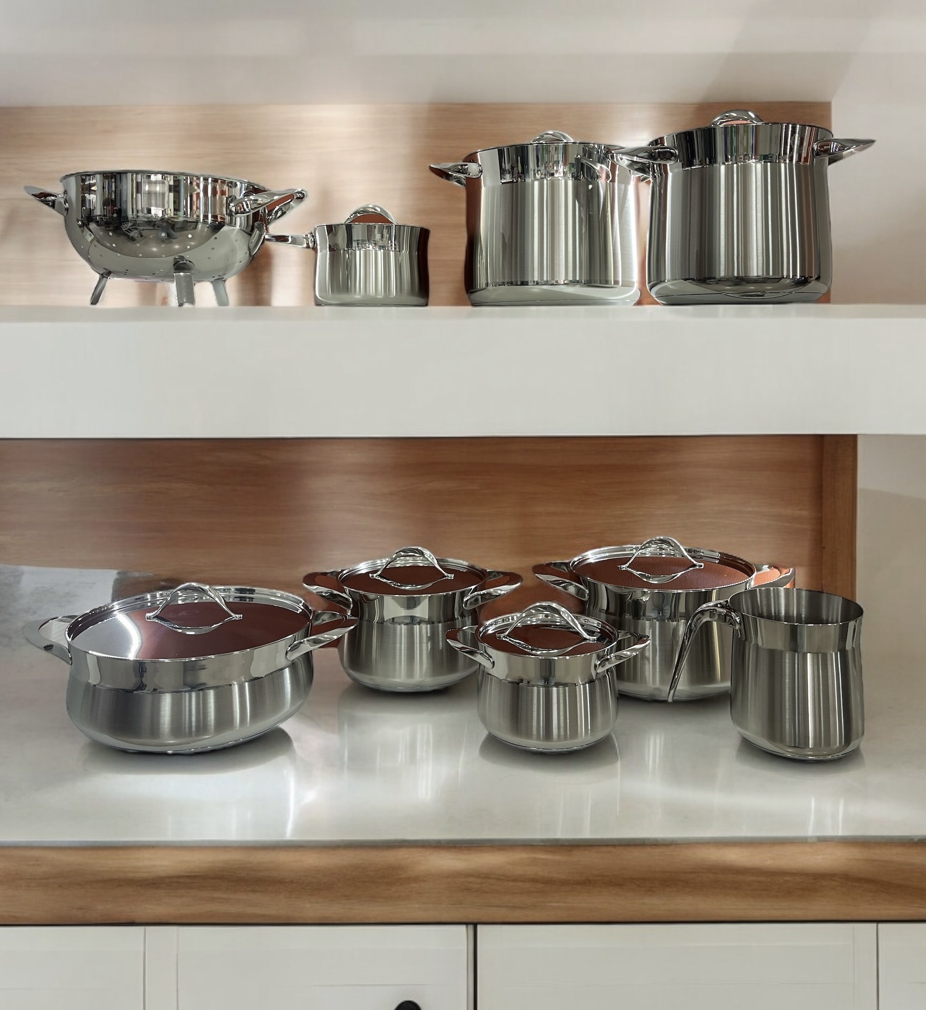 My Lady, la linea top di gamma, possiede un mix tra design e tecnologia unico nel suo genere. Le sue linee morbide si coniugano con uno spessore dell’acciaio di 1,2 mm. Adatta a tutti i piani cottura compresa lโinduzione. Acciaio inox 18/10. Manico acciaio. Triplo fondo. Made in Italy. 25 anni di garanzia. La batteria 16 pezzi comprende : Pentola Cm.24 – pentola Cm.20 – casseruola cm.24 – casseruola cm.20 – casseruola cm.16 – tegame cm.28 – tegame cm.24 – casseruola 1 manico cm.16 – bollilatte – colapasta con piedini Cm.22 – coperchio cm.16 (X2) – coperchio cm.20 (X2) – coperchio cm.24 (X3) – coperchio cm.28