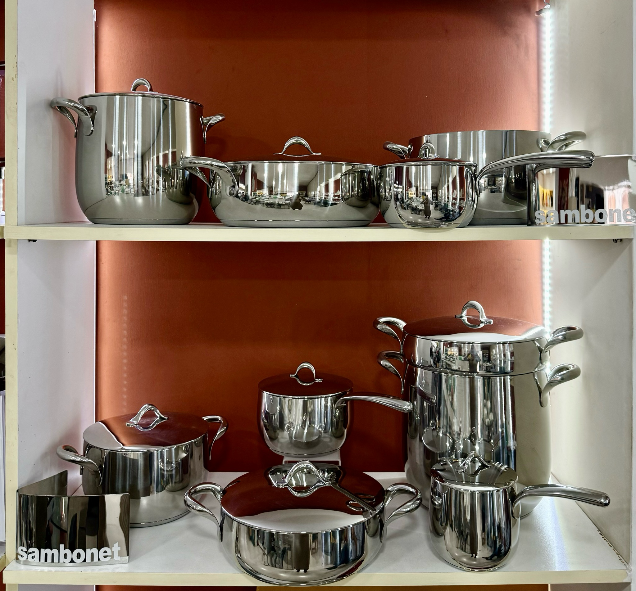 Pentola cm.20 – pentola cm.24 – casseruola 1 manico cm.16 , casseruola cm 20,casseruola cm 24, casseruola 1 manico cm.14 , tegame cm.24, tegame cm 28 – Cuocivapore – bollilatte Coperchio 12,Coperchio 14, coperchio 16 , coperchio 20(x2), coperchio 24 (x2), coperchio 28 – Acciaio inox 18/10 inossidabile di primissima qualità Fondo sandwich termoradiante ideale per ogni tipo di cottura: gas, elettrica, vetroceramica ed induzione