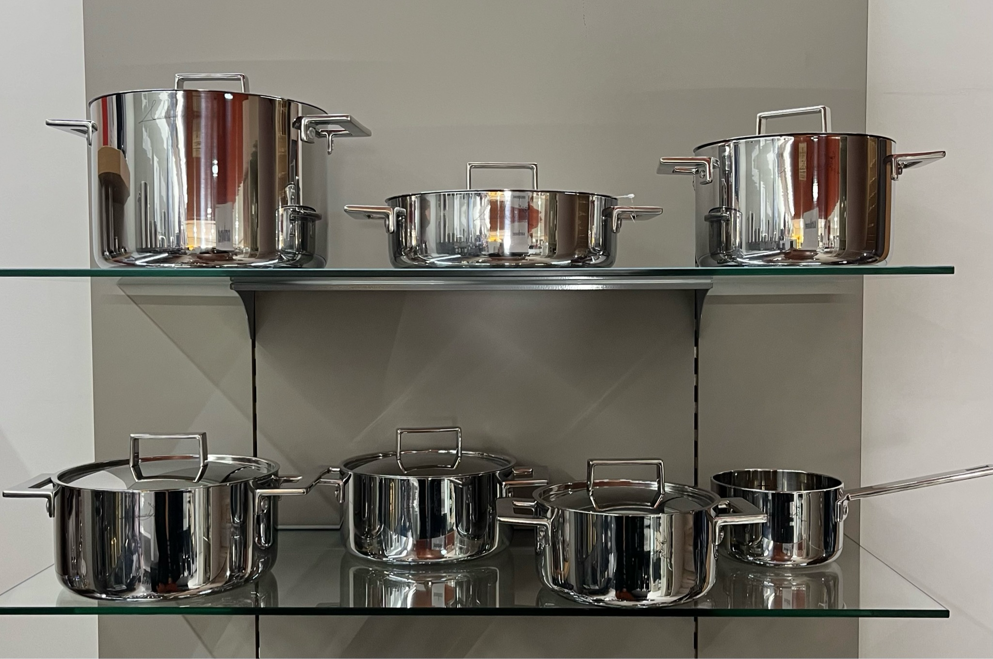 Pentola alta cm24 con coperchio, pentola cm.20 con coperchio, casseruola cm.18 con coperchio, casseruola cm20 con coperchio , casseruola cm22 con coperchio , casseruola 1 manico cm.14 con coperchio, tegame cm.24 con coperchio – effetto forno – acciaio inox 18/10 inossidabile di altissima qualitร – diffusione uniforme del calore e risparmio di energia e tempo di cottura – consigliato dallo chef Andrea Mainardi – il materiale multistrato ha lโanima interna di alluminio sia nel fondo e sia nelle pareti delle pentole e dunque la cottura dei cibi รฉ uniforme – adatta a tutti i tipi di cottura compresa quella a induzioneย