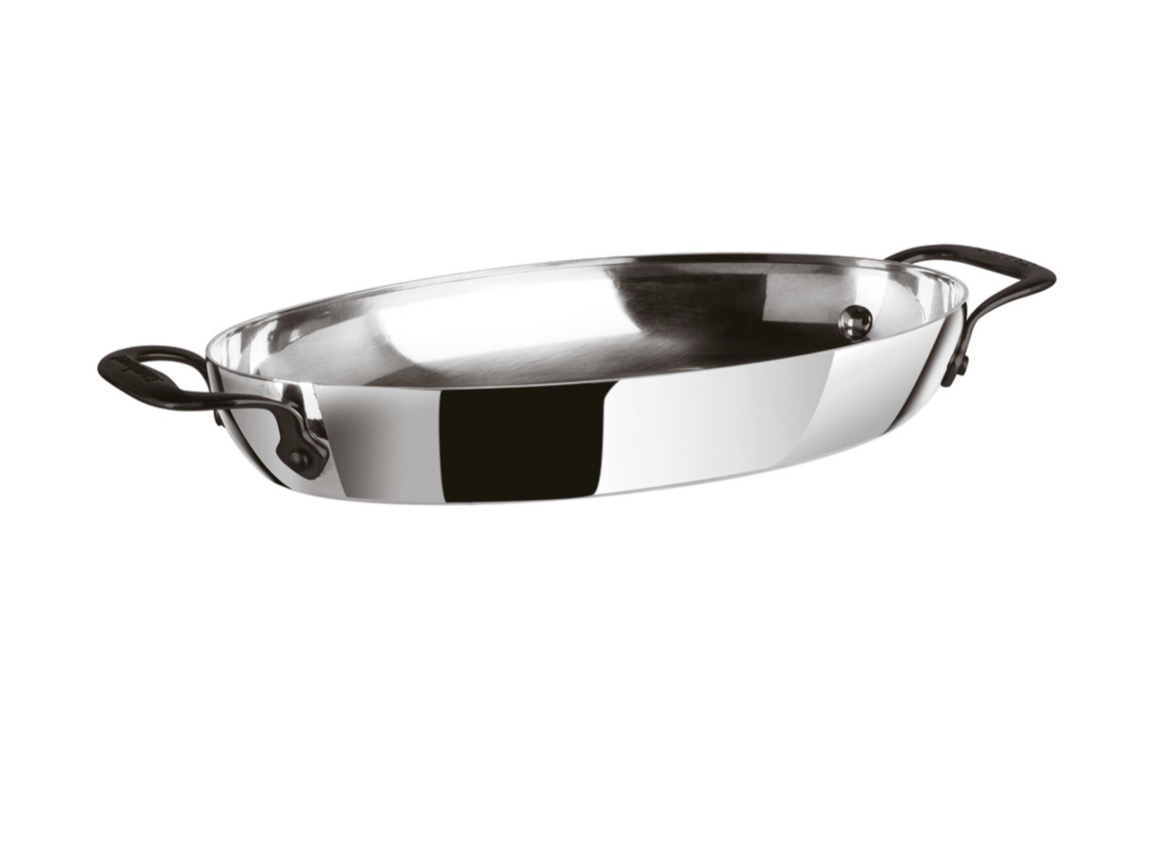 Sambonet Home Chef Casseruola bassa 2 maniglie – Ovale – 35,0 cm x 23,0 cm – h 5,0 cm – 2,300 lย L’elevata conducibilitร termica dell’alluminio unita all’altissima resistenza dell’acciaio inox. Sambonet Home Chef, per una cucina gourmet.