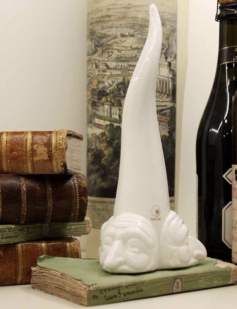 Il corno portafortuna con tre facce di Macrì, nella versione rossa in terracotta, è un ottimo oggetto scaramantico home decor ed anche un’idea regalo deliziosa. DimensioniH. 25cm – L. 12cm – P.12cm