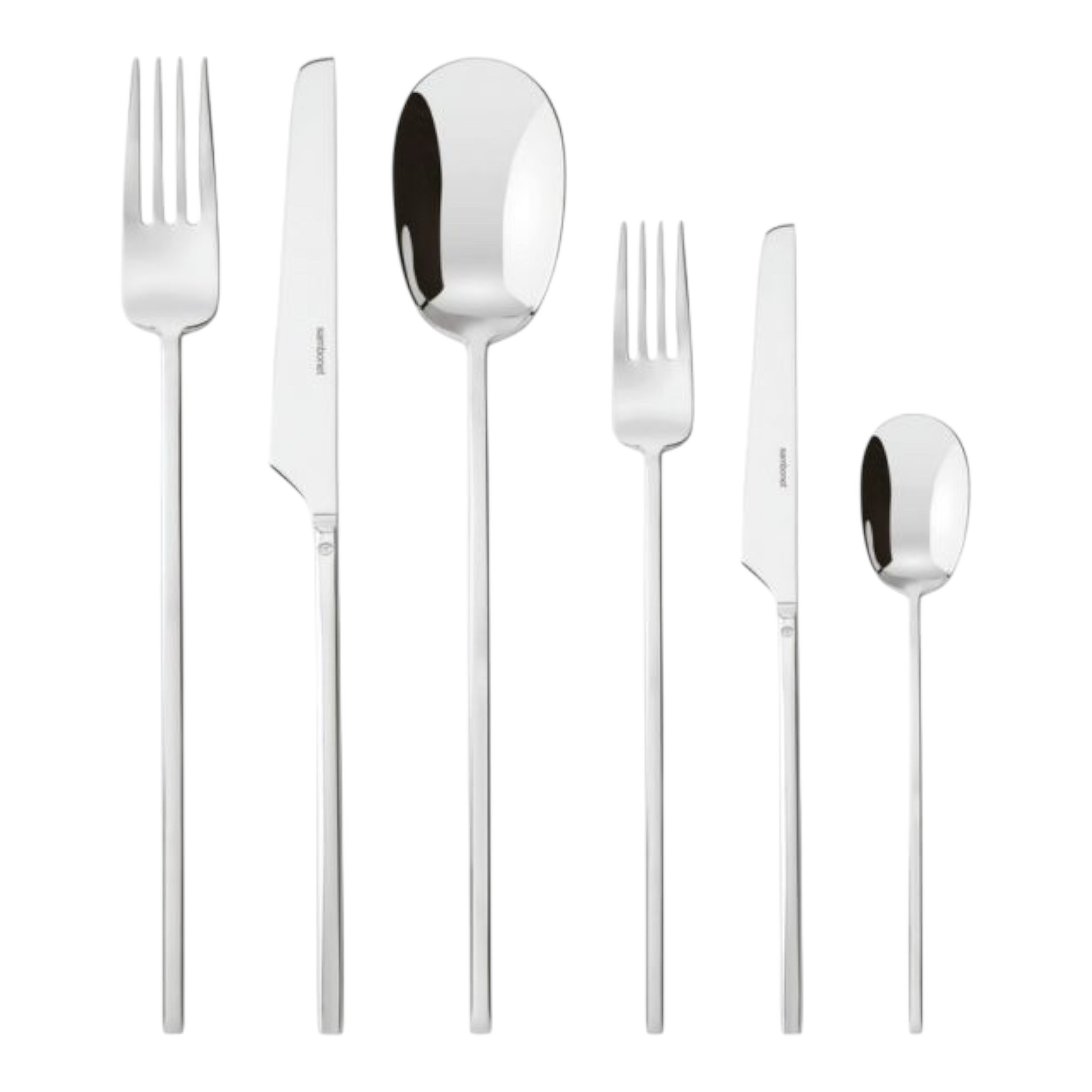 La lucidatura effetto specchio valorizza al meglio l’alta qualità dell’acciaio inox, enfatizzando forma e design. Le superfici vengono lucidate con l’ausilio di additivi e spazzole meccaniche di diversa grana e materiali, che levigano l’acciaio inossidabile fino a conferire un’elevata lucentezza. L’oggetto si arricchisce di riflessi che lo rendono ancora più prezioso.Il coltello monoblocco viene realizzato come un unico pezzo di acciaio. A differenza del coltello a manico cavo, composto da due parti, qui non si notano interruzioni tra il manico e lama e, impugnando queste tipologie di coltelli, si percepisce una piacevole sensazione di pesantezza e solidità.A un secolo dalla nascita del designer di cui porta il nome, Sambonet riparte dal proprio passato per guardare avanti con una nuova collezione speciale, 100, nata con l’obiettivo di realizzare una posata semplicemente bella, attuale, in grado di esprimere un’eleganza non ostentata.