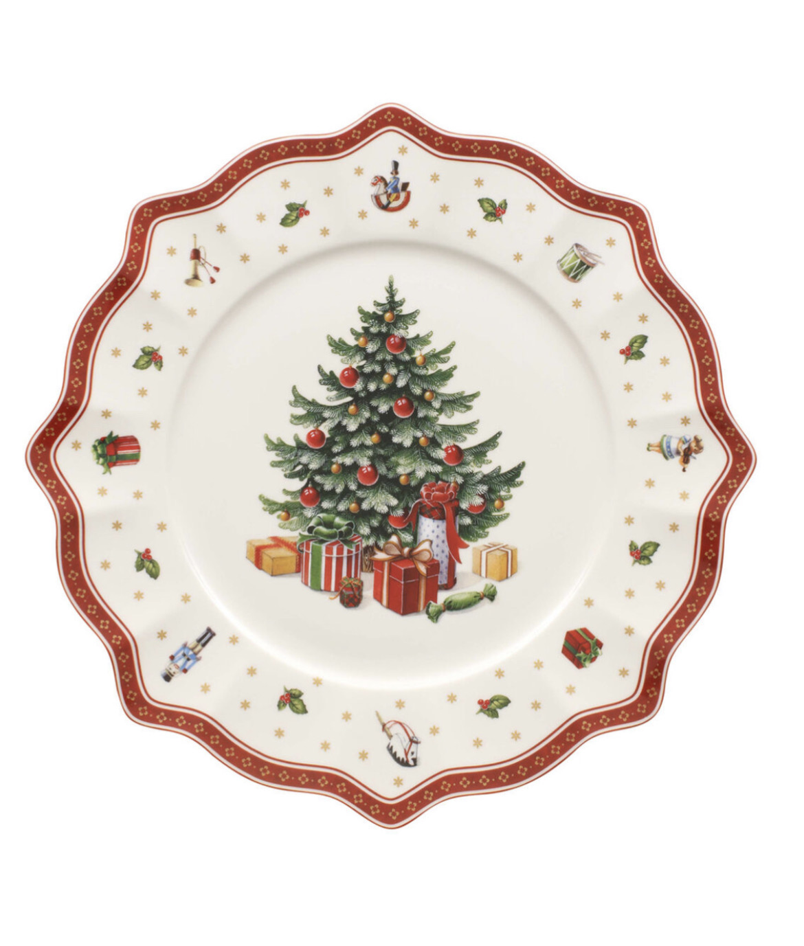 Piatto segnaposto per un’elegantissima tavola delle festeCon la collezione Toy’s Delight porterete una nostalgica atmosfera natalizia nella vostra casa. La porcellana è decorata con graziosi motivi color rosso, verde e bianco e rievoca ricordi d’infanzia. Da abbinare, collezionare e regalare. Questo piatto segnaposto è grazioso e dà un tocco di eleganza al banchetto di Natale. È perfetto per occasioni di festa con famigliari e ospiti. Allestite una tavola natalizia perfetta.Diametro cm35