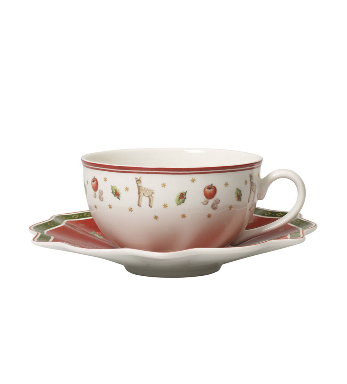Tazza per un caffè americano al mattinoCon la collezione Toy’s Delight porterete una nostalgica atmosfera natalizia nella vostra casa. La porcellana è decorata con graziosi motivi color rosso, verde e bianco e rievoca ricordi d’infanzia. Da abbinare, collezionare e regalare. Con questa graziosa tazza potete gustarvi cremosi caffelatte durante le fredde giornate invernali. Apparecchiate la tavola per le feste. Il set comprende 6 tazze caffellatte 6 piattini