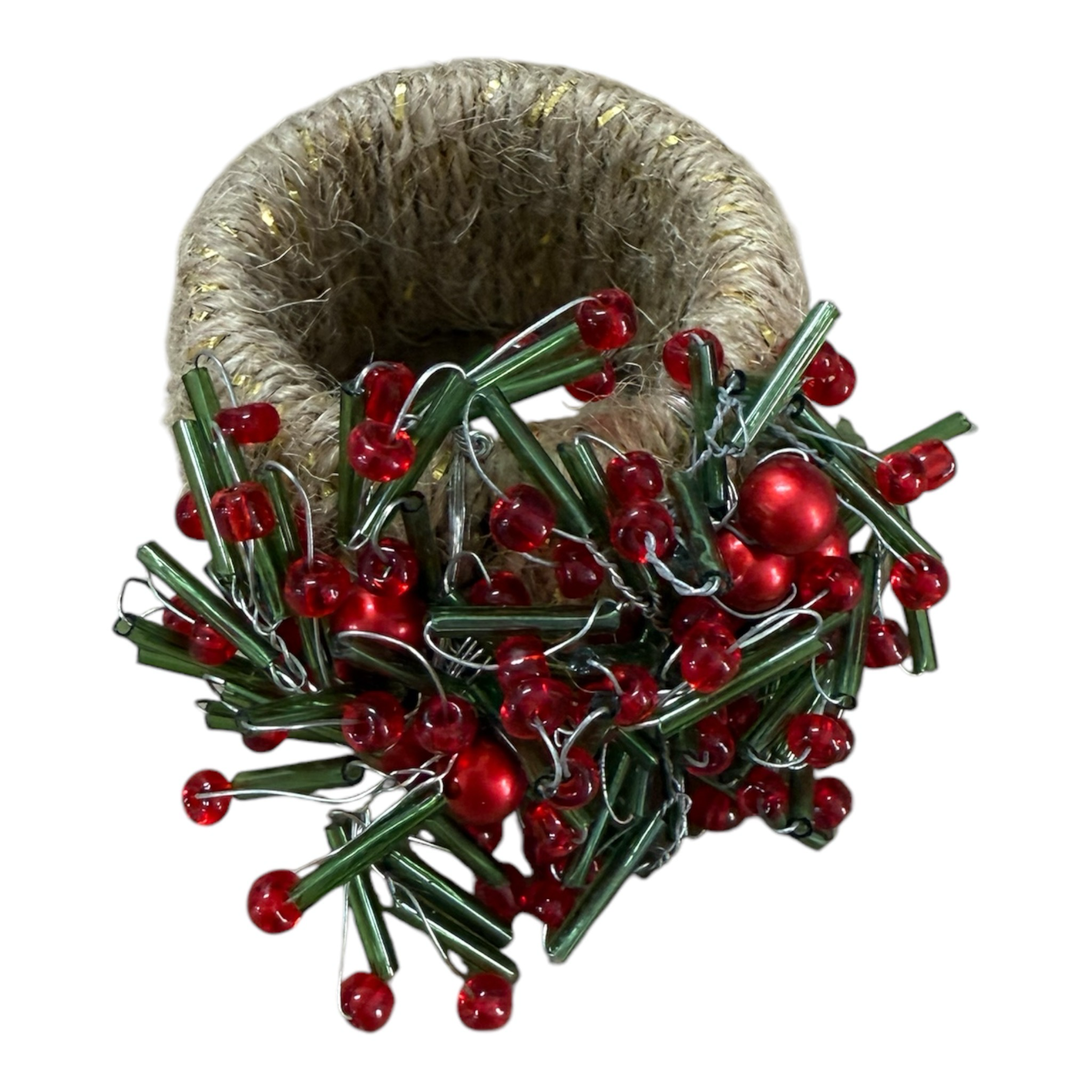 Porta tovaglioli in ferro, juta, acrilico e perline in vetro. Diametro 5cm