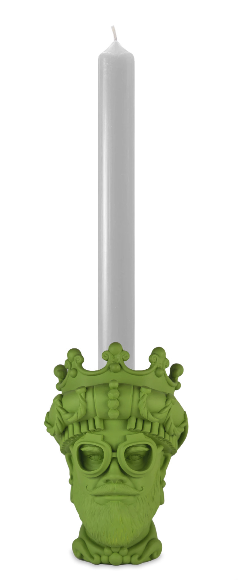 L’hipster incarna lo spirito di coloro che abbracciano la diversità, la creatività e uno stile di vita alternativo. Dedicato agli innovatori culturali, ai curatori di tendenze e a coloro che cercano la bellezza nell’eclettismo.Altezza cm.12 senza candela Colore verde Materiale poliresina Collezione Sagrada familia Scatola regalo personalizzata Baci Milano