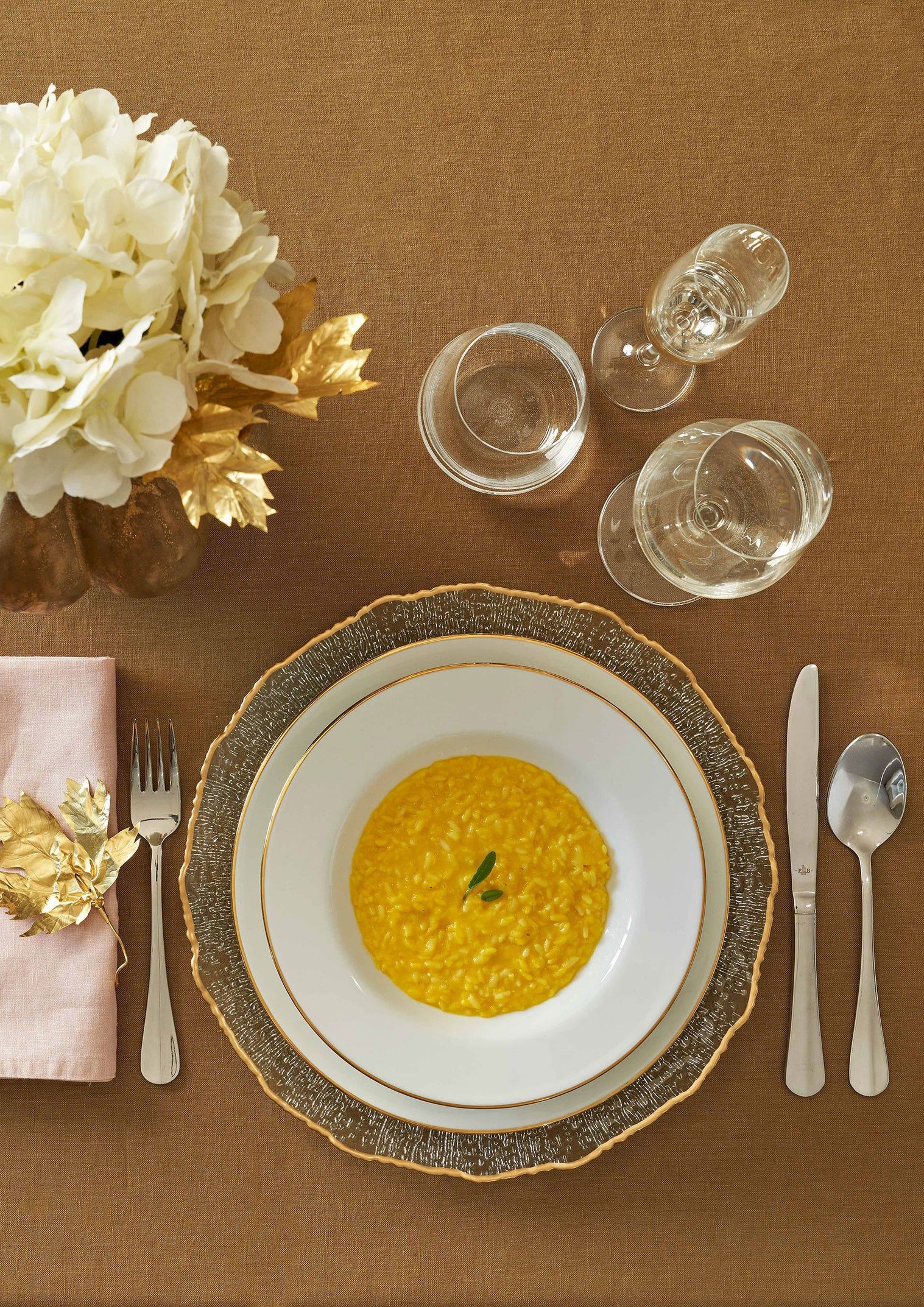 Una collezione dove l’eleganza intramontabile della satin porcelain e la trasparenza contemporanea del vetro incontrano l’opulenza dell’oro, regalando così alla mise en place un tratto regale. Una tavola delle grandi occasioni, per celebrare il piacere dello stare insieme.12 piatti piani12 piatti fondi12 piatti frutta1 insalatiera