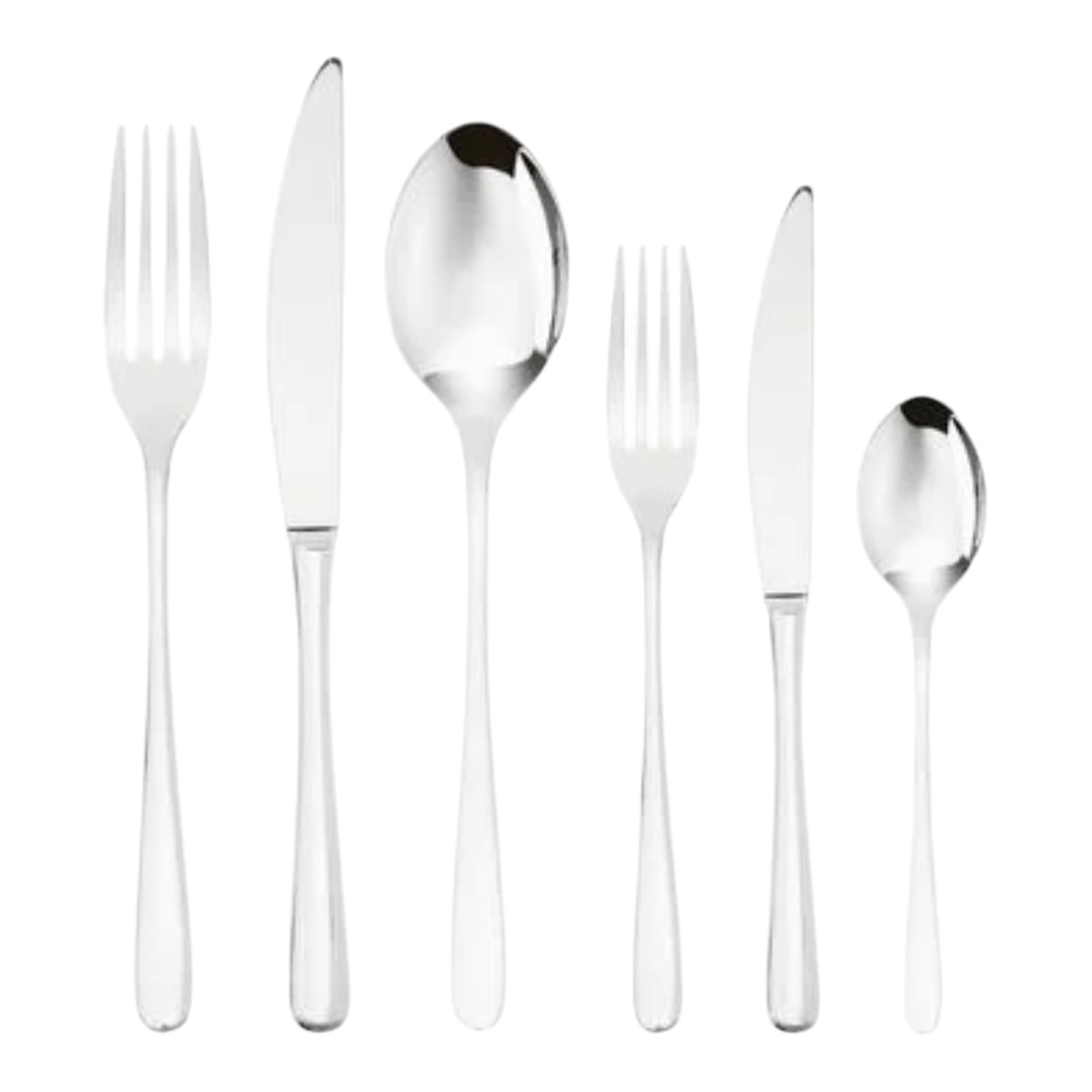 Sambonet Taste Servizio tavola 36 posate (6 forchette, 6 coltelli, 6 cucchiai, 6 cucchiaini, 6 forchette frutta, 6 coltelli frutta)La lucidatura effetto specchio valorizza al meglio lโalta qualitร dellโacciaio inox, enfatizzando forma e design. Le superfici vengono lucidate con lโausilio di additivi e spazzole meccaniche di diversa grana e materiali, che levigano lโacciaio inossidabile fino a conferire unโelevata lucentezza. Lโoggetto si arricchisce di riflessi che lo rendono ancora piรน prezioso.Il coltello monoblocco viene realizzato come un unico pezzo di acciaio. A differenza del coltello a manico cavo, composto da due parti, qui non si notano interruzioni tra il manico e lama e, impugnando queste tipologie di coltelli, si percepisce una piacevole sensazione di pesantezza e soliditร .Un design essenziale e minimalista che produce un forte impatto emozionale. La sinuosa forma a goccia di Sambonet Taste invita a provarla!